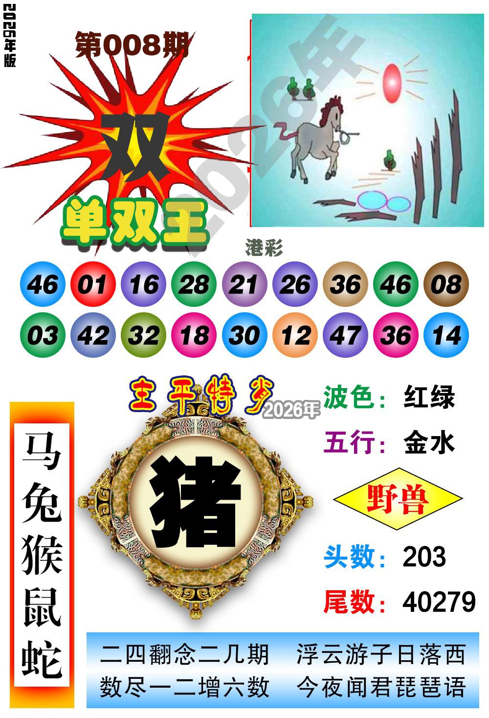 | 001期稳中③肖:猪马兔 |