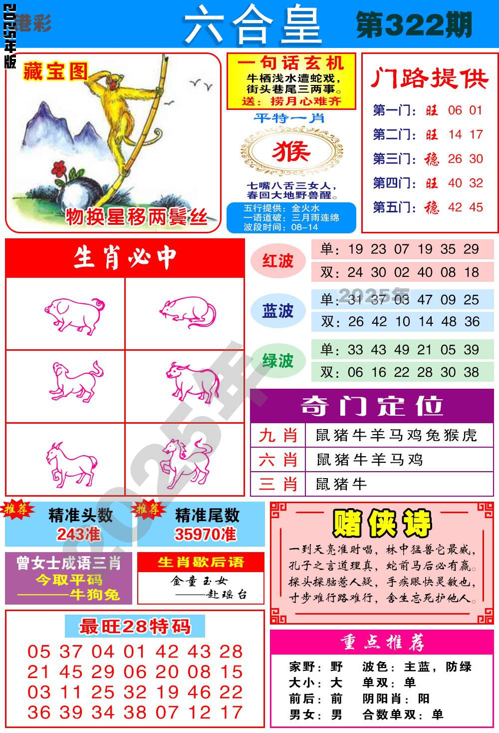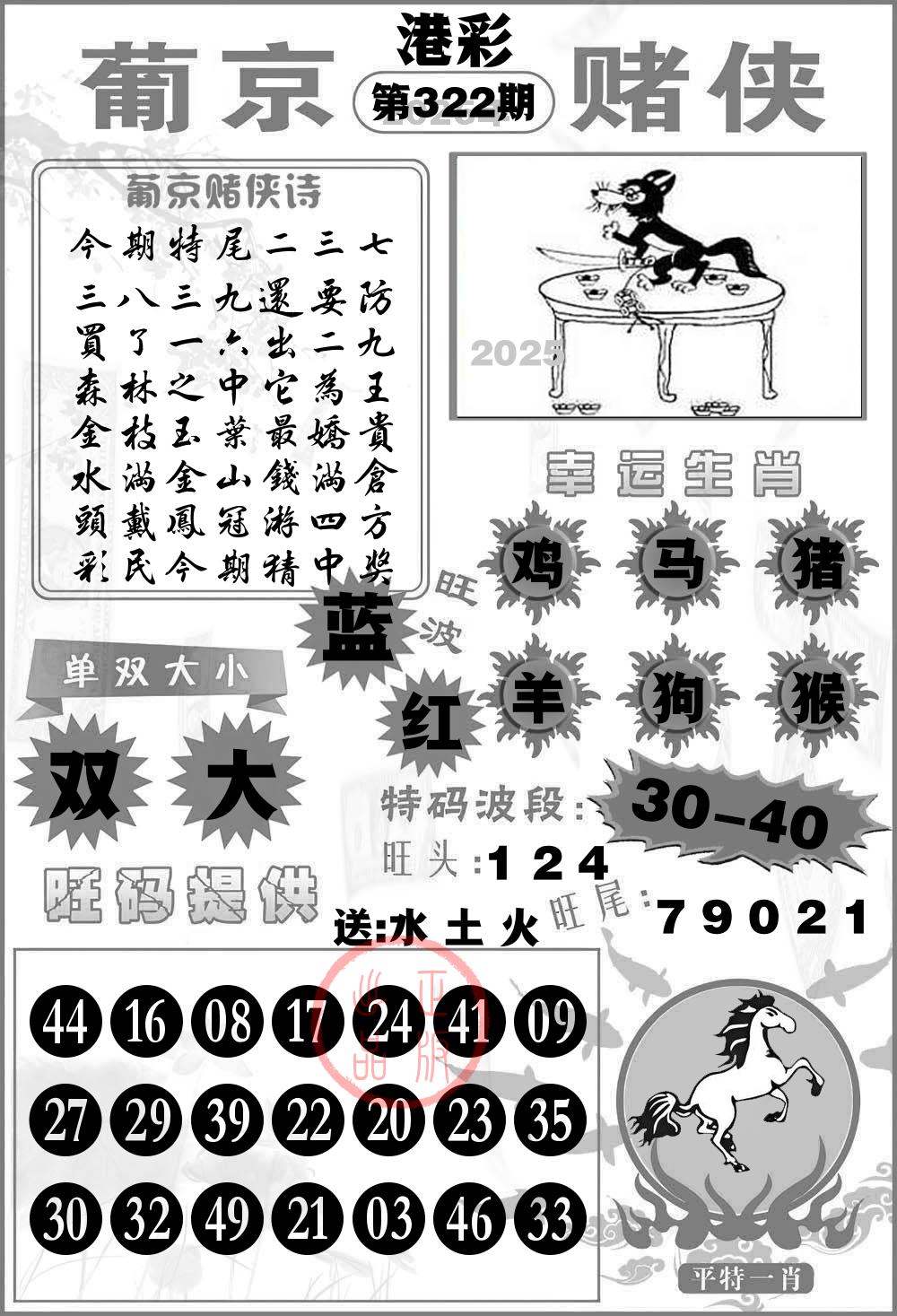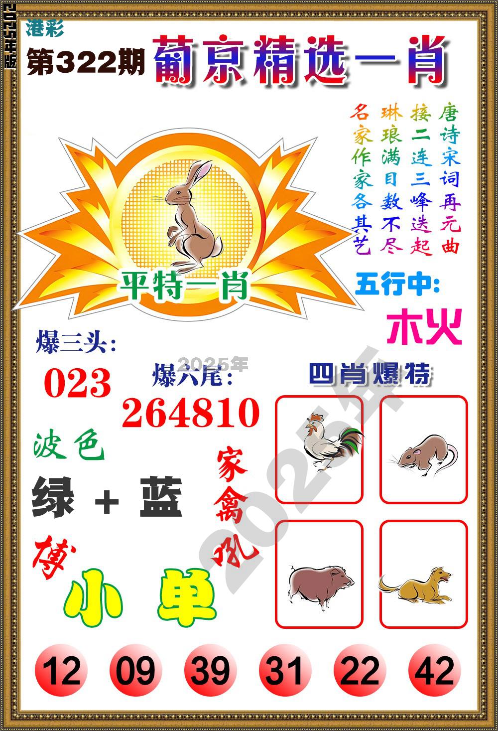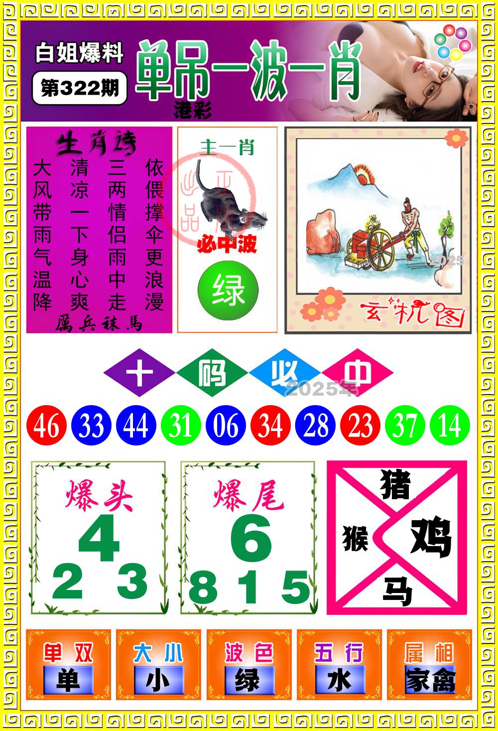 322期稳中⑤肖:猪马虎蛇鸡
