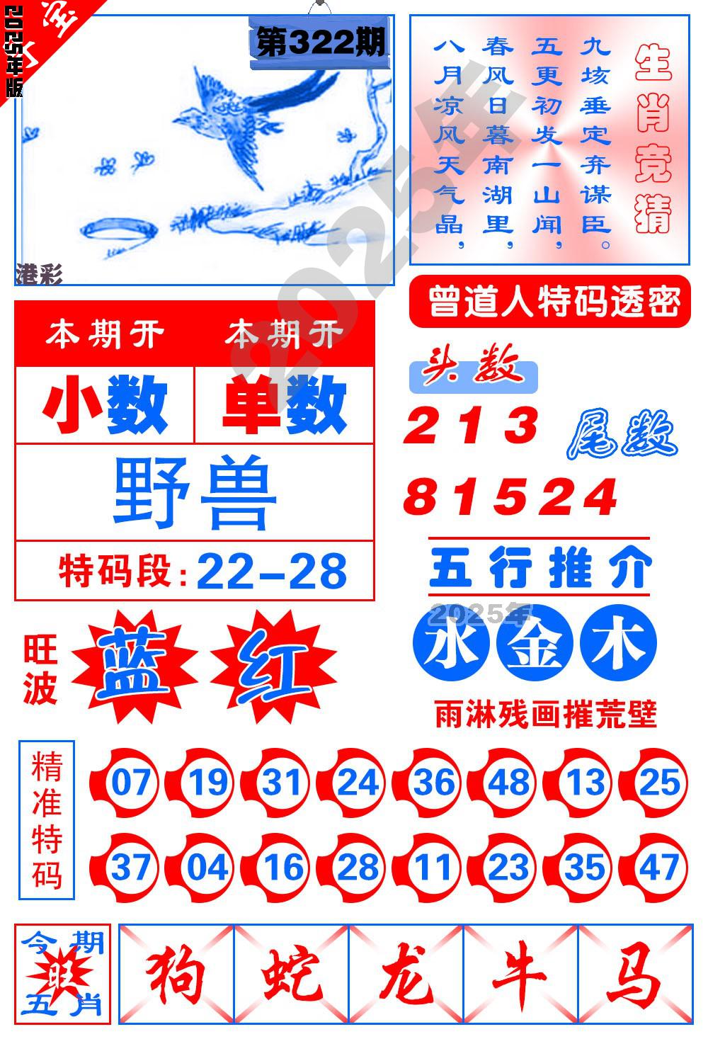 321期稳中⑤肖:虎蛇狗马