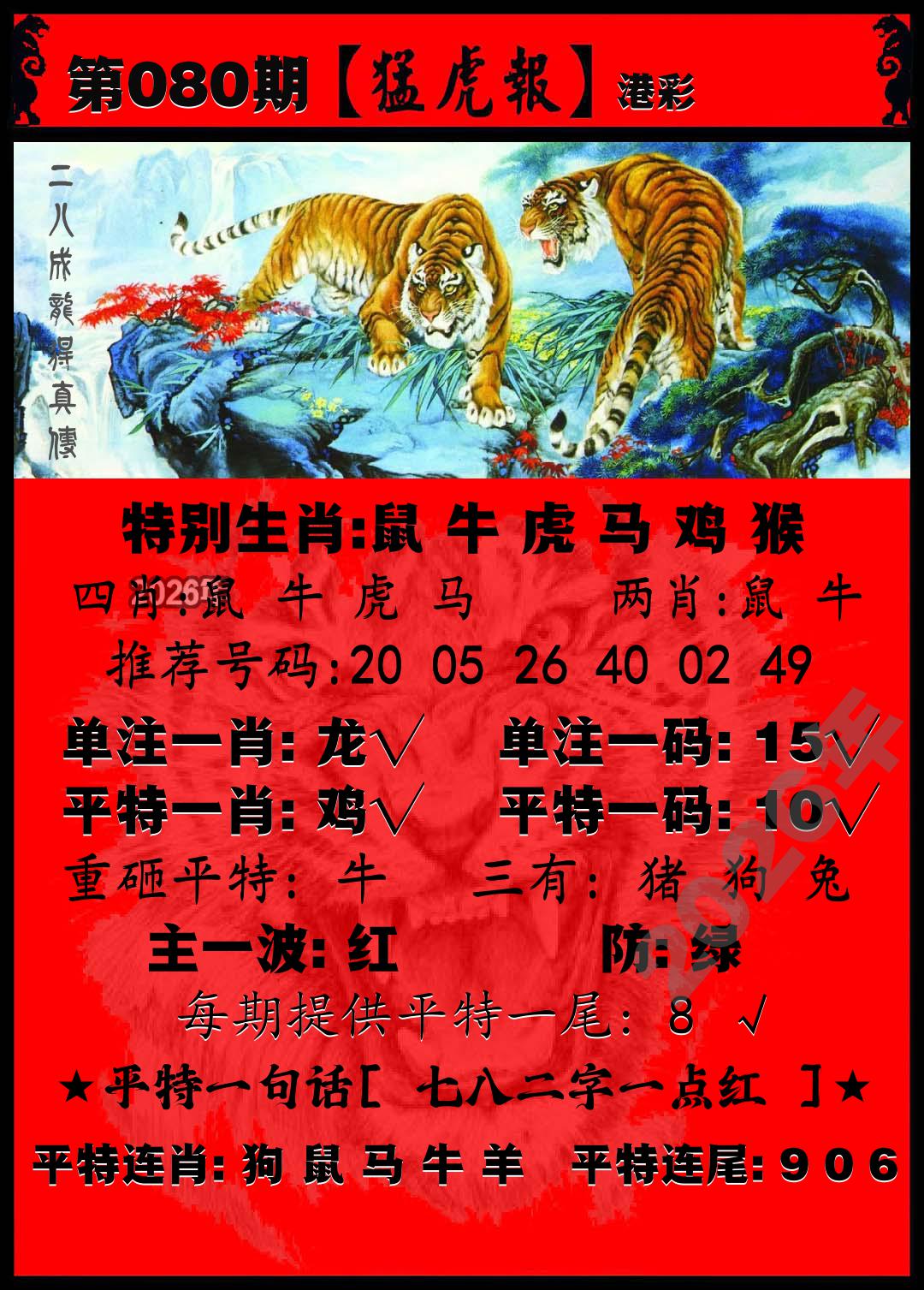 | 084期稳中⑤肖:虎狗猪猴蛇 |